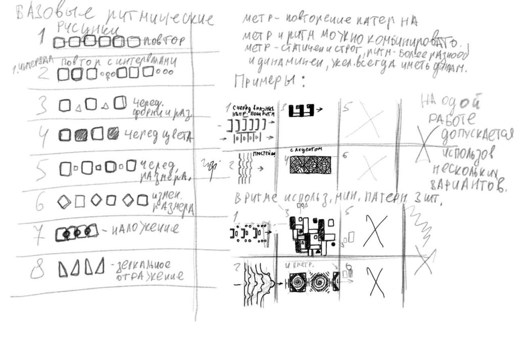 Композиция ритм и метр. Пришлось, как обычно, всё делать самому. Некоторые преподователи в этой школе весьма ленивы и кроме — хорошо и прекрасно, ничего не могут сказать.
