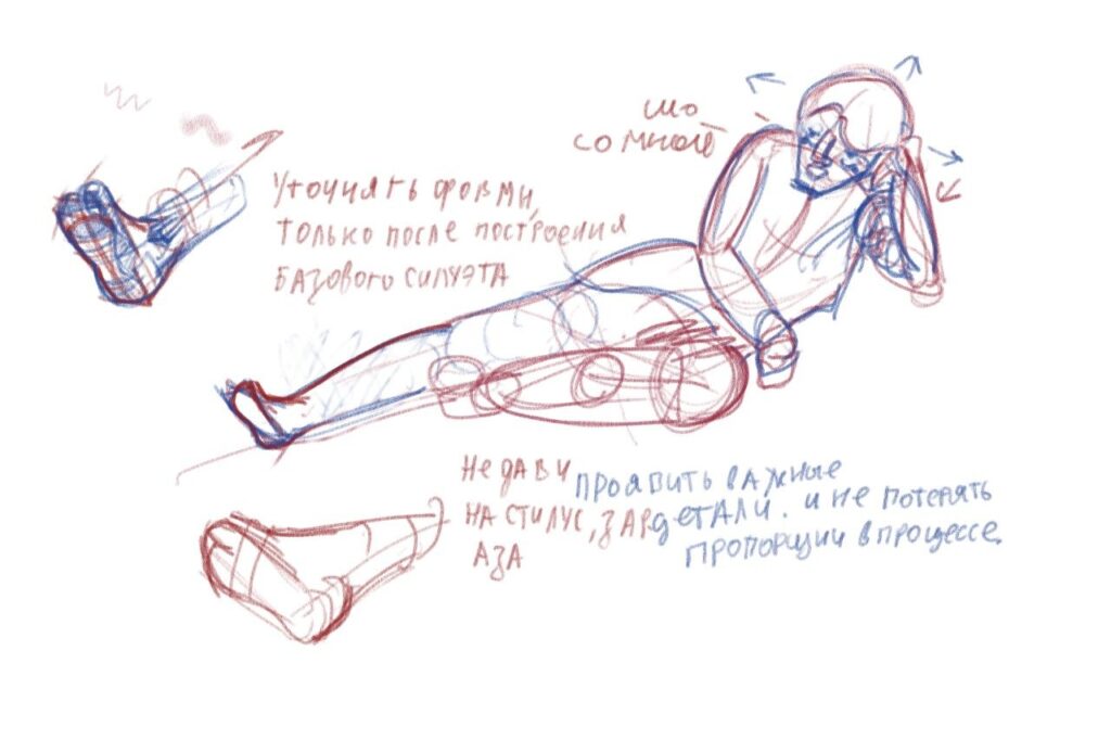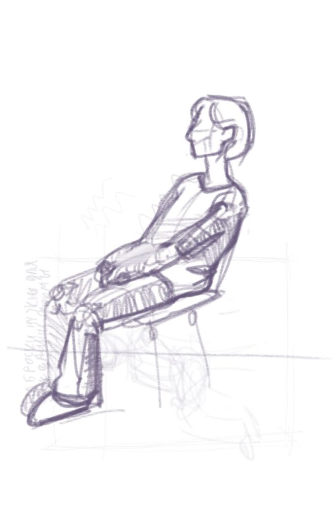 Наброски с натуры. Ну я был не особо в духе, как можно заметить по рисункам. Да и привык рисовать более конструктивно поэтому набросок живой линей такой корявенький (Для первого раза даже неплохо, у второго товарища вообще чуть ли не детские рисунки вышли. Хотя сравнивать себя с 50 летней бабкой — ну такое). Первый самый топовый и он с конструктивным построением.